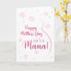 mother's day card pregnant Mana. This Mother's Day Card is perfect for the expectant Mana in your life. (Mana means mother in Greek.) The future mana will love this card's cute floral design with a minimalist line drawing of a pregnant woman's belly and pink flowers. It says, "Happy Mother's Day to the soon-to-be Mana! This Mother's Day card will be a hit with any pregnant mum whose baby will call her Mana.