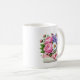 This classic white coffee mug is shown with a lovely Mother's Day floral bouquet print.