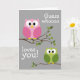 A funny, lighthearted design for your mom! Cartoon owl in bright colors with leaves and branches with a Happy Mother's Day text that you can personalize.