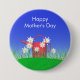 Button with my original artwork of a bright red watering can on green grass with daisies and a blue sky. Text says "Happy Mother's Day".