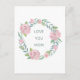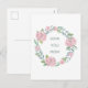 Don't forget your Mom. This simple Mother's Day postcard makes it easy to send with a pretty floral wreath design with pink roses and blue green foliage in watercolor. In the center is written "Love you Mom" in matching blue green sans serif font.