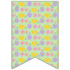 This awesome bunting features a selection of pretty flowers, including pale and bright pink bicoloured Cosmos, pink Daisies, pale purple Chrysanthemums and blue forget me not blooms and yellow butterflies forming a circle around some pretty writing in purple and pink that says "Only a Mother knows how Love Grows". A lovely design for celebrating a Mother.