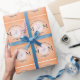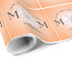 The wrapping paper design in the image has a peach-orange background with a repeating pattern. Each section of the pattern includes the word "MOM" in a bold, elegant font. The “O” in “MOM” is stylised as a circular emblem featuring a hand-drawn image of a flower and the text “Happy Mother’s Day” above it. Beneath the circle, it says “You are the best” in smaller font. The design is neatly aligned in a grid-like layout, giving it a clean and modern appearance.