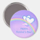 Magnet with my design of a rainbow and two white and blue hearts in a purple sky. Text says "Happy Mother's Day!"