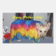 Sticker. This German Shepherd (Buddy) is modelling a colourful shawl from Hawaii. Buddy is such a good sport. He models scarves, hats, t-shirts, jackets, and other items. The slogan for modelling mother's clothes and the Mother's Day greeting, plus the photo all can be customised.