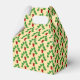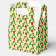 This awesome patterned favour box features a digital art image of a series of leaves from a houseplant called a Monstera, also known as the Swiss Cheese Plant. The leaves are dark green and lobed and some have holes in them. The plant pot is red and contains some brown soil.