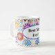 This ceramic coffee mug is shown with a lovely bright coloured floral print design with a message for Mum..