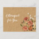 Mothers Day Peach Roses Bouquet Rust Burlap Fabric Postcard