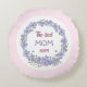 Mother's day round pillow with a purple flower wreath, pink and white. Easily personalise the text on both sides or leave some of it blank. - Kate Eden Art