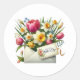 Sticker is shown in a pretty floral bouquet art print.