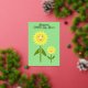 This beautiful foil Mothers Day Brunch invitation features a graphic design image of a pretty yellow sunflower with a green stem and leaves and bright yellow sunflowers. The Mother sunflower has kind eyes and a smile on her face. There is a smaller sunflower next to the Mother flower and her leaf is touching the leaf of the child sunflower offering love and support. beautiful design for any Mother on Mothers Day. There is custom text on the front in beautiful gold foil. There is additional text on the back so you can include all the details.