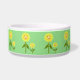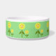 This awesome pet bowl features a graphic design image of a pretty yellow sunflower with a green stem and leaves and bright yellow sunflowers. The Mother sunflower has kind eyes and a smile on her face. There is a smaller sunflower next to the Mother flower and her leaf is touching the leaf of the child sunflower offering love and support. A beautiful design for any Mother on Mothers Day.
