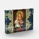 This is a custom designed image of the Immaculate & Sorrowful Heart of Mary with the Baby Jesus. A lumbar pillow with this image is also available in the Shower of Roses Shoppe. The white script overlay adds an extra special touch to this design. Text and fonts may be modified.
