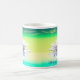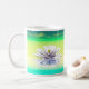 Coffee mug for Mum with my artwork of a white water lily reflected on the water in greens and yellows. Text says "Happy Mother's Day".