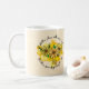 Mother's Love Will Never End Coffee Mug - This is a funny and cute Mother's Day Present for your mum. It is a coffee mug that says, "Mother's Love Will Never End Coffee Mug, It is There From Beginning to End" and the mug is a pale yellow with black lettering. It also has yellow flowers, a bee and honeycomb - all shades of yellow, with a little greenery too! It is a super gift for Mother's Day, Christmas, Your Mum's Birthday or anytime you want to show her a little love and appreciation!