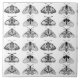 Ceramic tile in a pattern of detailed, beautiful moths in black and white, with shades of grey on a white background