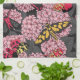 Hand drawn vector illustration with various moths on blue hydrangea flowers