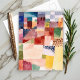 Colourful abstract postcard in a watercolor painting, inspired by Paul Klee's "Motif from Hammamet."