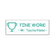 This positive rubber stamp design features the encouraging feedback message "FINE WORK!" and a custom tutor name. It also features a decorative trophy icon. It could be used by a teacher, educator, or tutor when marking assignments, to acknowledge that a student has done well.