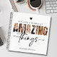 Photo keepsake calligraphy script notebook which can be personalized with the inclusion of seven photos which will appear within the 'AMAZING' photo frames. The notebook can also be personalized with the inclusion of your name or other choice of text which will appear at the bottom of the design. This notebook is ideal for journaling and is a great motivational keepsake notebook which serves as a daily reminder of how amazing you already are. Choose your own spiral color and paper content style. Ideal as a gift for a friend, family member or anyone who needs a reminder of how amazing they are. When uploading your photos, please ensure to adjust them so they appear within the letter frames as you would wish.