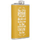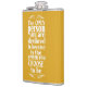 The flask itself is fine. It’s a cheap flask, obviously bought in bulk, however am prepared to overlook that. Given that it is a personalized item, I would have liked to have seen gift boxing instead of the generic packaging. Terrible printing, and/or quality. It’s a cheap, tacky vinyl. It is not cut straight and is also applied in a way that it is overhanging the bottom, causing the glue to catch on items and it will eventually roll and tear, damaging the wrap.
