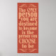 “The only person you are destined to become is the person you choose to be”. See my store for more items with this quote.