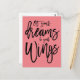Motivational Dreams Be Your Wings Script Coral Postcard