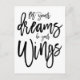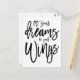 Send someone motivational vibes with the feel good quote Let Your Dreams Be Your Wings in an artsy script in black on a white background.