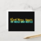 Motivational postcard with "good things happen to those who hustle " quote in yellow and aqua blue neon text. An inspirational design for any age!