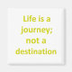 Inspirational magnet says "Life is a journey; not a destination." Yellow letters on a white background. Square magnet.