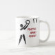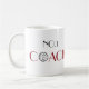 Netball coach themed coffee mug with goal shooter clipart and motivational quote about practicing. Netball gift ideas for players and coaches.