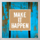 motivational poster quote text make it happen on original photograph peeling paint on weathered wood. Photography copyright Ann Powell all rights reserved.