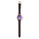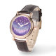 Lovely wristwatch in purple and pink shades, featuring a nature scene with a starry night sky as motif. The text reads "Reach for the stars" and you can of course change the text into something else, like a name, to make personal.