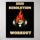 This design features a strong hand carrying dumbbells on fire. With the motivational quote “2025 RESOLUTION WORKOUT”, it makes a pretty image for a customised wall art.