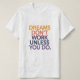 Inspirational typography design featuring the quote “Dreams Don’t Work Unless You Do”. A perfect reminder for hustlers, students, entrepreneurs, and gym lovers who believe in hard work and dedication. Ideal for t-shirts, posters, mugs, stickers, and other custom products. Makes a powerful gift for anyone chasing their goals and striving for success.