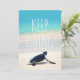A baby turtle on the beach is trying to reach the ocean with a quote that says: Keep going.