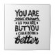 Black and white lino print of a motivational quote that says "You are good enough, but you can always be better". Offers encouragement for people to know that self-acceptance and growth go hand in hand.