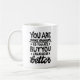 Black and white lino print of a motivational quote that says "You are good enough, but you can always be better". Offers encouragement for people to know that self-acceptance and growth go hand in hand.