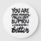 Black and white lino print of a motivational quote that says "You are good enough, but you can always be better". Offers encouragement for people to know that self-acceptance and growth go hand in hand.