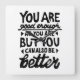 Black and white lino print of a motivational quote that says "You are good enough, but you can always be better". Offers encouragement for people to know that self-acceptance and growth go hand in hand.