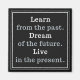 “Learn from the past. Dream of the future. Live in the present.” You can customise the background colour to be any colour you wish.