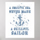 "A smooth sea never made a skilful sailor" quote, inspirational, motivational quote poster with anchor sign and seagulls in blue and white.