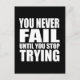 You can add some originality to your wardrobe collection with this " you never fail until you stop trying" text design with awesome typography font lettering, is a great gift idea for men, women, husbands, wife girlfriend, and a boyfriend who will love this unique motivation and inspirational saying artwork. The best amazing short positive sayings present for your wisdom collection. If you like this artwork, you can check out other similar designs and options.