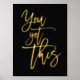 Motivational Quote You Got This Script Black Luxury Real Foil in your choice of either gold or silver for the positive quote You Got This on a classic black background which you can change to another colour if you so wish.