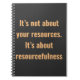 ‘It’s not about your resources. It’s about resourcefulness.’ simple elegant and women encouragement quote with simple text on notebook for office and school kids use. it is fully customisable you can change it as per your choice