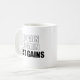 A mug with the motivating slogan "No Pain No Gain Just Gains" in simple bold text typography.