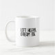 A mug with the motivating slogan "Lift heavy, dream big." in single font black text typography.