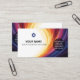 A vibrant business card for motivational speakers, featuring a colourful swirling design, space for a name and logo, and inspirational quotes along with contact information.