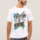 A motivational T-shirt featuring bold typography with the inspiring phrase "Perfection is Boring," encouraging determination and ambition.