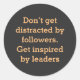 ‘Don’t get distracted by followers. Get inspired by leaders.‘ simple elegant and encouragement quote with simple text on classic round sticker. it is fully customisable you can change it as per your choice